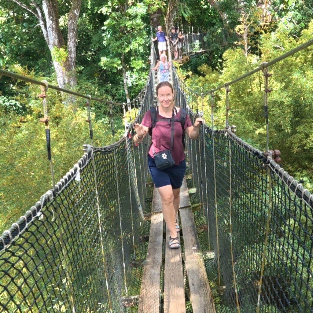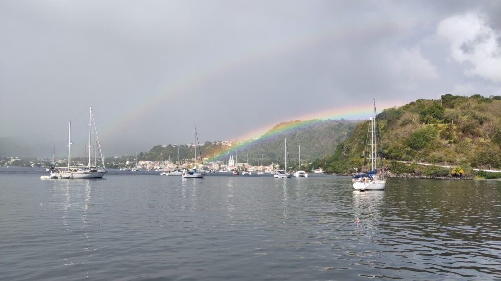 Inzwischen haben wir die schönsten Ankerbuchten der Westküste besucht und ausgiebig davon Gebrauch gemacht, dass wir wieder ankern können, da Michele die defekte Winsch reparieren konnte. Natürlich haben wir uns auch die Hauptstadt Fort-de-France angeschaut. Hier bekamen wir Besuch von meinen Eltern. Gemeinsam fuhren wir in den Garten „Jardin de Balata“, wo es eine Vielzahl an Blumen, Pflanzen, Palmen und auch Kolibris zu bestaunen gibt. Ein echtes Highlight war der Baumwipfelpfad, von dem aus sich ein schöner Blick über die Gartenanlage bietet.