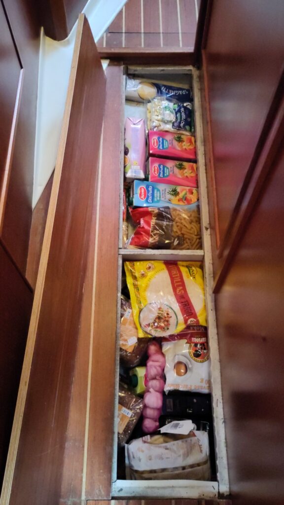 Da ich gerade alleine bin, gehe ich fast jeden Tag in einen Supermarkt oder zu einem Gemüsehändler und fülle somit Stück für Stück das Schiff mit Lebensmitteln auf.