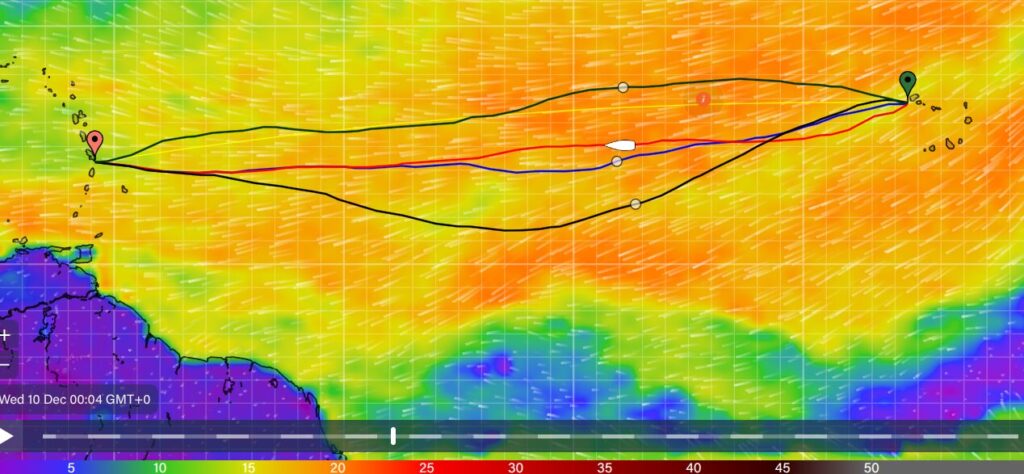 Jetzt sitze ich hier im Schiff und lasse jeden morgen die Route von einer Wetterrouting-Software durchrechnen. Wenn ich kommenden Donnerstag losfahre, werde ich „nur“ 30 % der Zeit im Starkwind (20-30 Knoten) verbringen. Die hohe Welle von drei Metern werde ich nicht umgehen können. Wenn der Motor bis dahin wieder einsatzbereit ist, werde ich mich wohl kommendem Donnerstag auf den Weg in die Karibik machen.